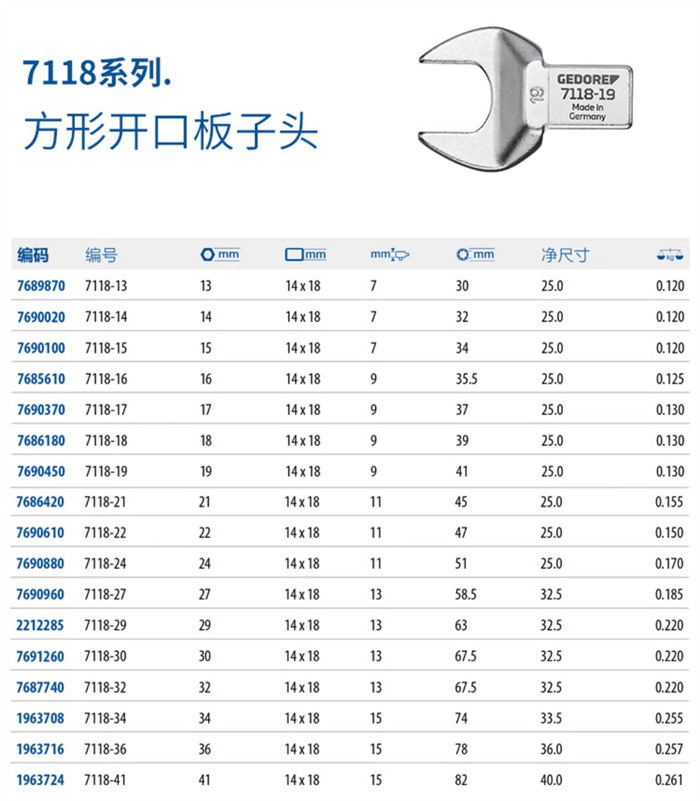 產(chǎn)品名稱: 7118系列.方形開口板子頭